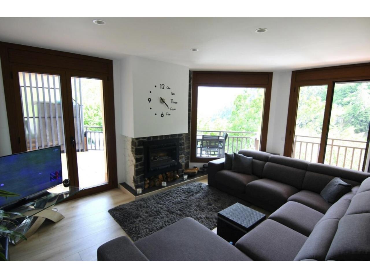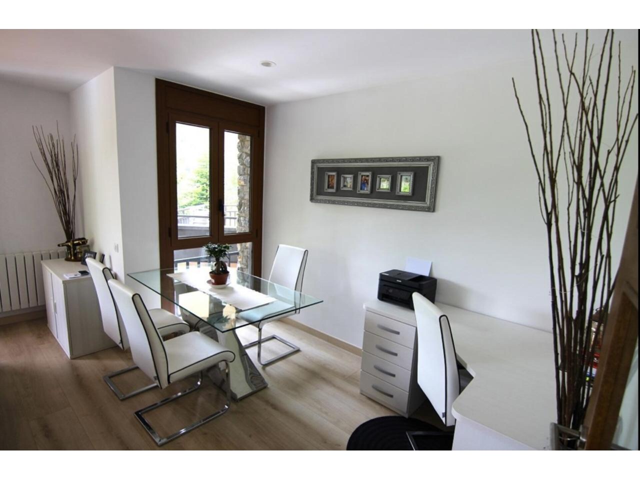 Consta de rebedor, un ampli saló-menjador amb llar de foc i accés a terrassa d'uns 12m2, cuina independent equipada, 3 habitacions dobles espaioses (1 en suite), 2 banys, rebost, plaça d'aparcament i guarda-esquís.